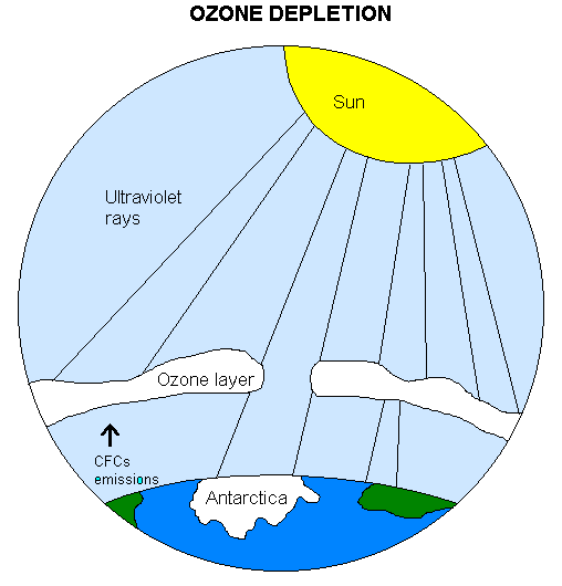 Ozone depletion. Holes in the ozone layer caused by HCFCs and CFCs causes direct exposure to the sun’s harmful UV radiation.